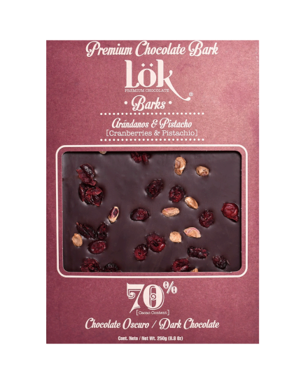 SUPER BARK LOK 70% ARÁNDANOS Y PISTACHO x 250 GR