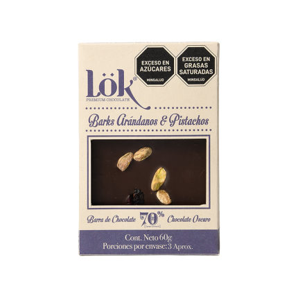 Bark de chocolate 70% contenido de cacao con pistacho, almendra y maní. Los frutos secos siempre han acompañado al chocolate, por esta razón creamos nuevas formas de disfrutar esta mezcla tradicional. Trozos de maní, almendra y pistacho con chocolate 70% cacao, una combinación perfecta para cualquier ocasión.