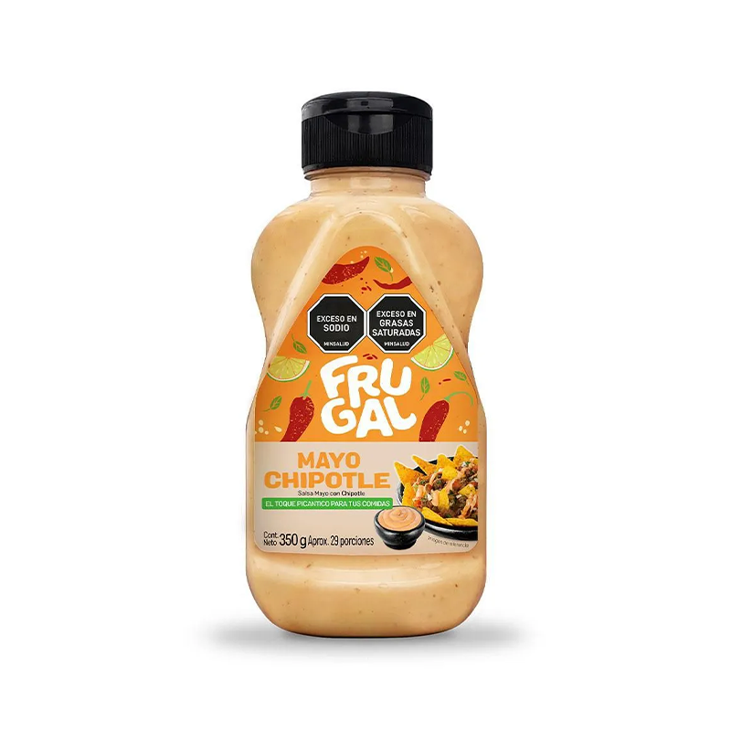 Salsa Mayo Frugal Chipotle: Mayonesa con un toque ahumado y picante de chipotle. Ideal para darle un giro vibrante a tus comidas, asados o tacos con un sabor intenso.